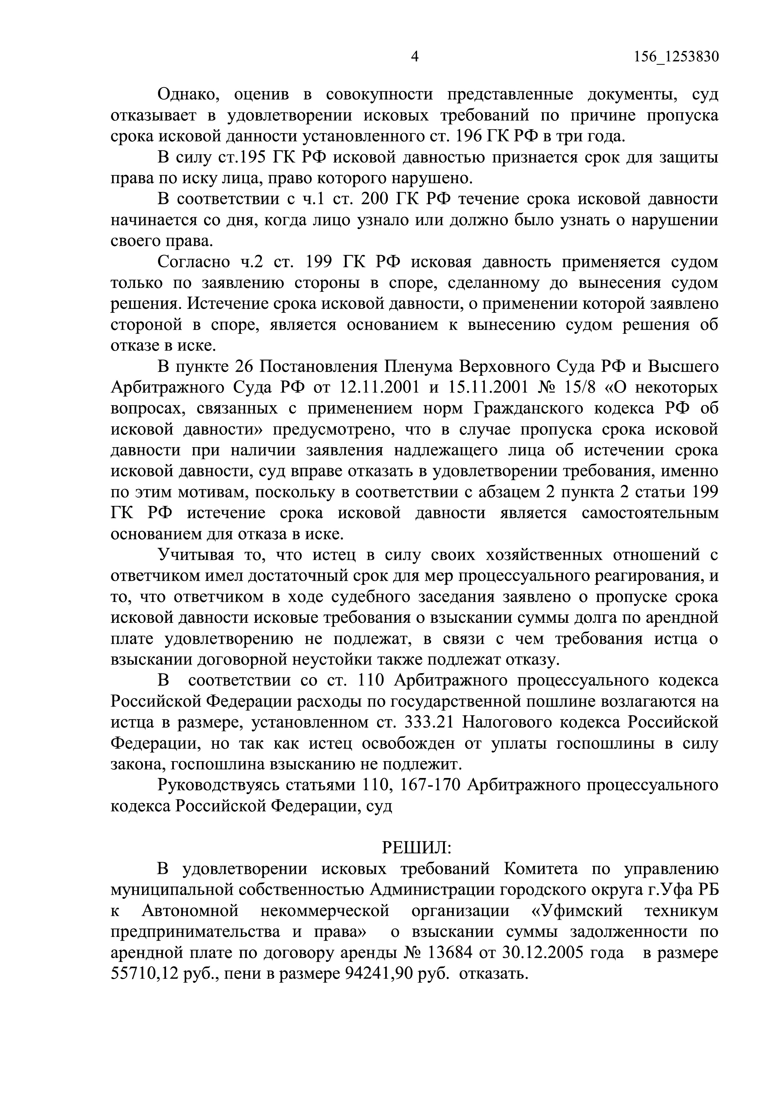 Хотя я был в те времена в гражданских делах начинающим юристом, но обратил внимание суда, что по обоим этим делам КУМС пропустил сроки исковой давности даже по последним месяцам аренды. Поэтому Арбитражный суд РБ в обоих случаях в удовлетворении исковых требований отказал, а я получил от техникума премию – аж 3 000 рублей!
