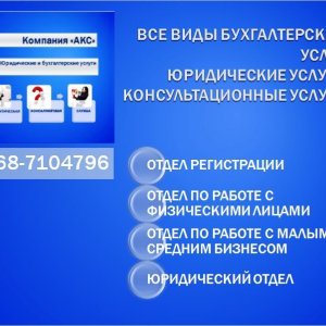 Компания "АКС" оказывает широкий спектр бухгалтерских и юридических услуг, как юридическим лицам, так и физическим.Мы поможем Вам зарегистрировать ИП, ООО,...