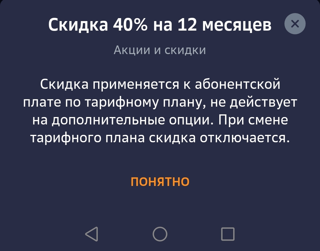Законны ли вычеты из суммы по тарифу — сначала скидки по платной подписке, а потом только 40% по изначальной акции, идущей при подключении с тарифом?