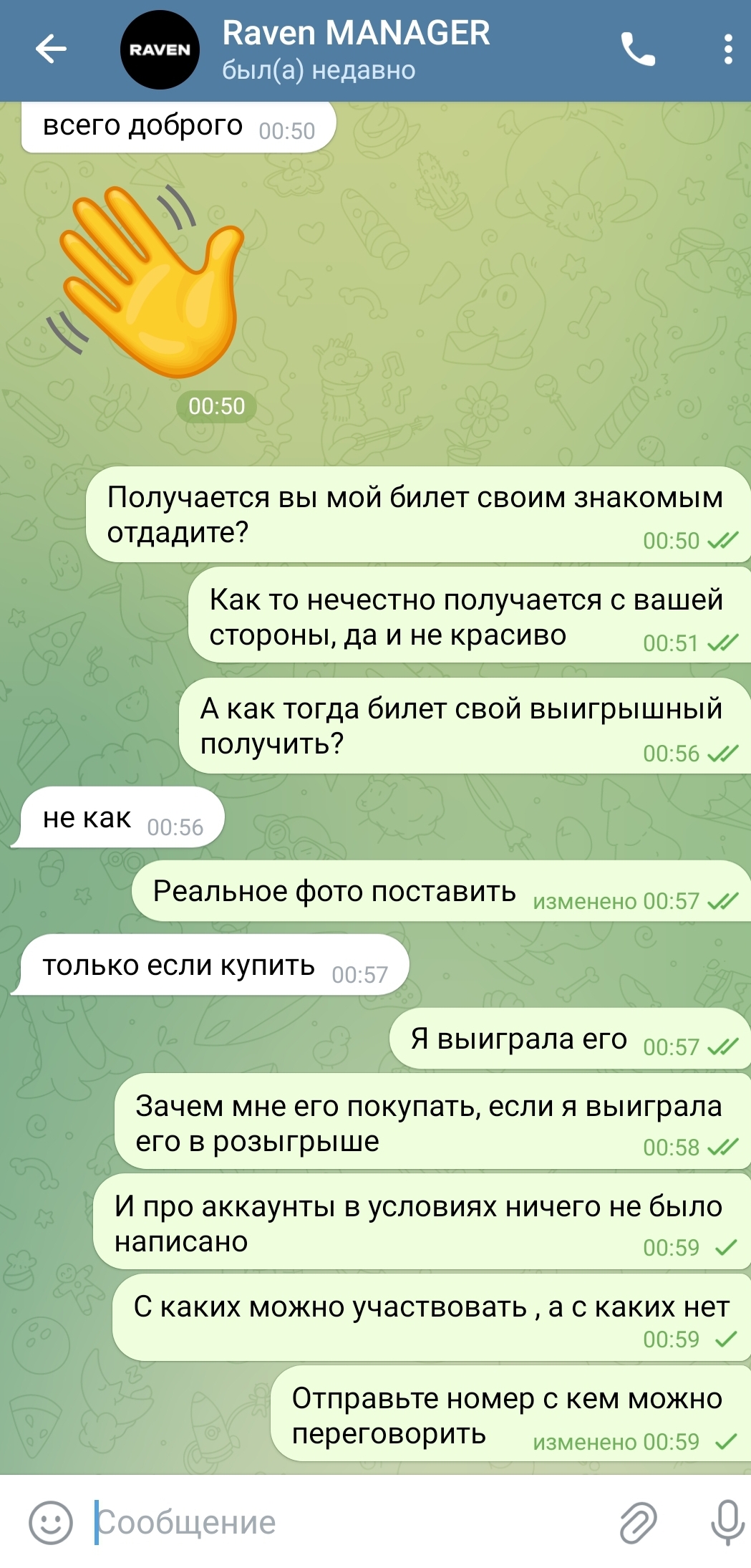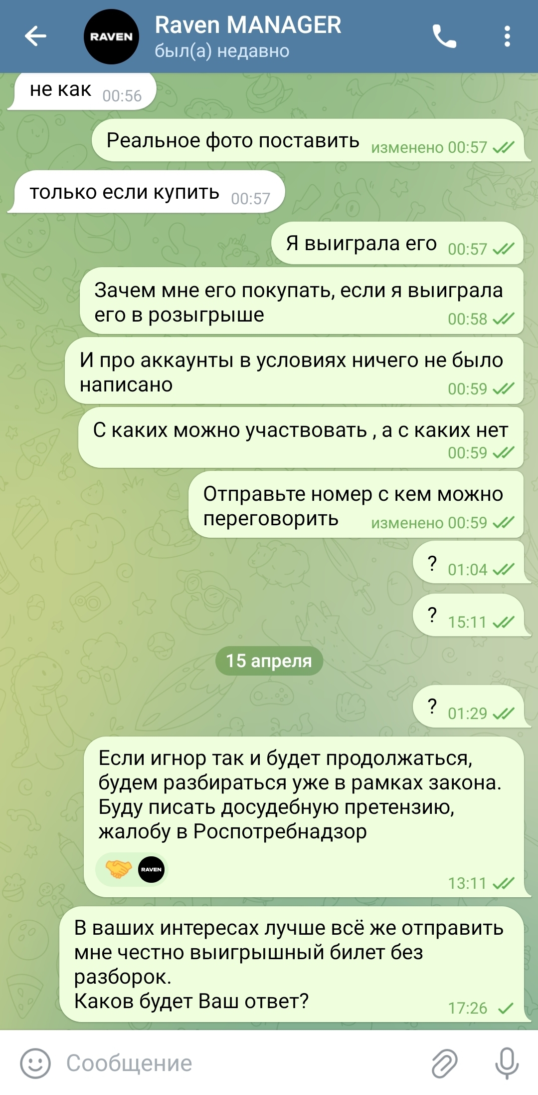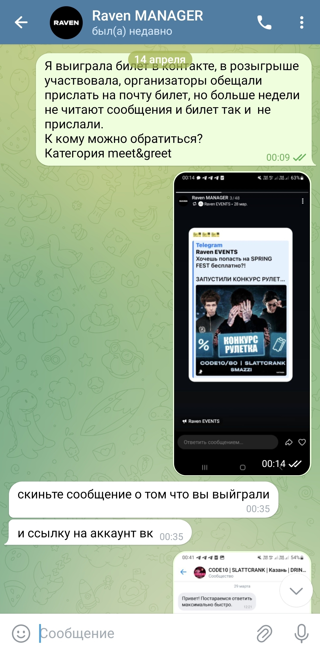 Организатор не соблюдает условия розыгрыша, билет мне высылать не хотят (стоимость 3999 руб.).