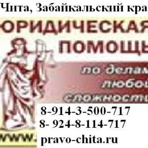 Юридическая защита населения в Чите и Забайкалье.АНТИКОЛЛЕКТОР, АВТОЮРИСТ, трудовое, семейное и наследственное право, ВОЕННЫЙ ЮРИСТ – ЗА ПРАВА, другие отрасли.